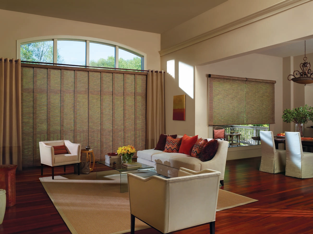 To make sure your view is left untouched, Hunter Douglas has ingeniously created panels that stack tightly, allowing your view to take center stage. When closed, their rich texture enhances your home's décor with depth and elegance. With over 600 colors to choose from and several varieties of top treatments, these window panels can be as basic or as elaborate as you wish. Our Blind Scapes professionals will show you that covering such large windows doesn’t have to be a hassle! The Skyline® Gliding Window Panels do just as their name implies- glide. Easy and smooth to operate, these window fashions are ideal for any window and room, large or small!